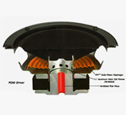 采用超细玻璃纤维材料制成,质量极小 ,较小功率即可推出很高声压级,复合结构强度极大,在高速震动中还可保持结构稳定性,确保音质还原和声音的良好扩散性。