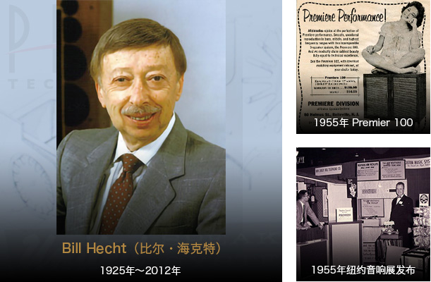 “Bill Hecht (比尔·海克特)先生是业界最早的音响系统设计和扬声器研发先驱之一。他最早在手工制作音响单元时期,事实上就已经开发出几种新的设计来解决一系列特定问题,极大提升了音响单元的性能。软质球顶高音(US Patent # 3328537 – 1967)是比尔·海克特的创新之一,在过去50年来,一直是全球使用最广泛的高音扬声器设计。”